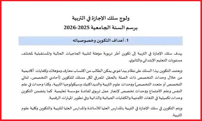 مذكرة مباراة ولوج سلك الاجازة في التربية 2025-2026، مذكرة لوزارة التعليم العالي والبحث العلمي والابتكار في شأن ولوج سلك الإجازة في التربية برسم السنة الجامعية 2025-2026.