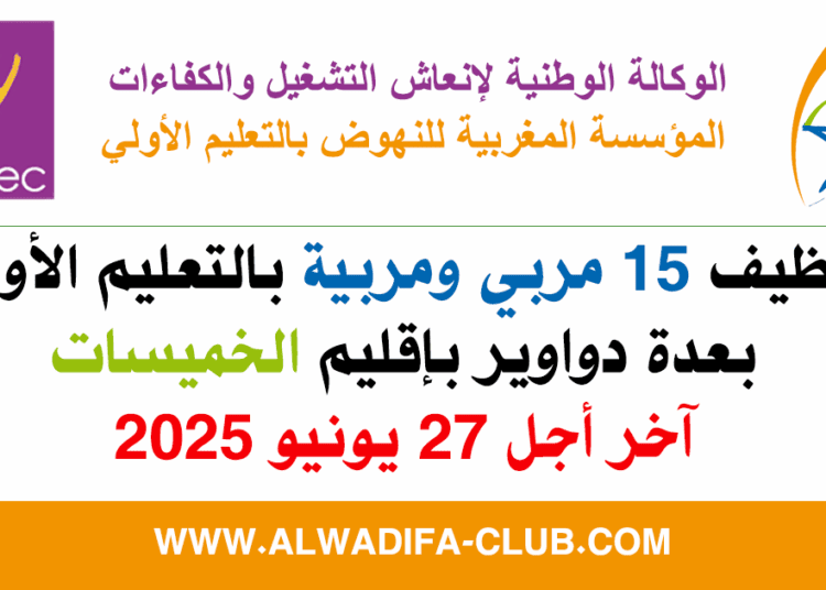 Avis de recrutment 15 Enseignant Des écoles sur KHEMISSET