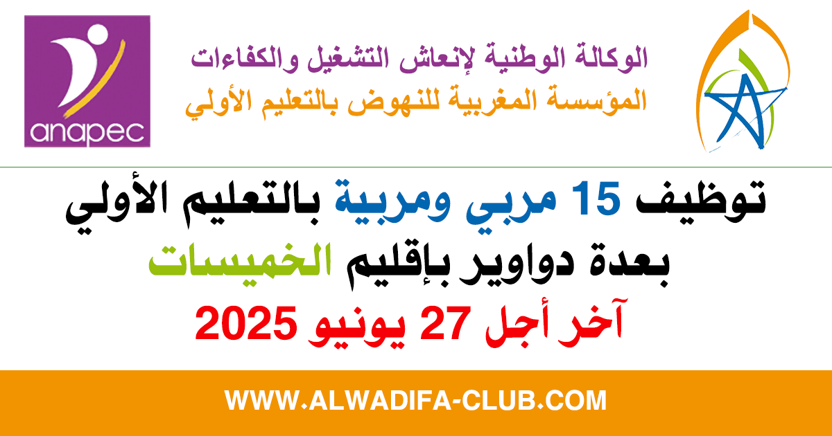 Avis de recrutment 15 Enseignant Des écoles sur KHEMISSET