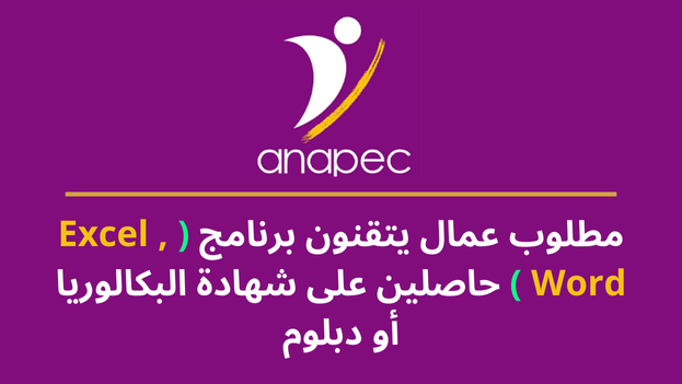 Anapec recrute des Opérateurs de Saisie Salaire 3120 DHS : Recrutement de (15) OPERATEUR Bac ou plus Technicien et technicien sp Maitrise de logiciels ( Excel , Word ) Salaire mensuel : 3120 DHS.
