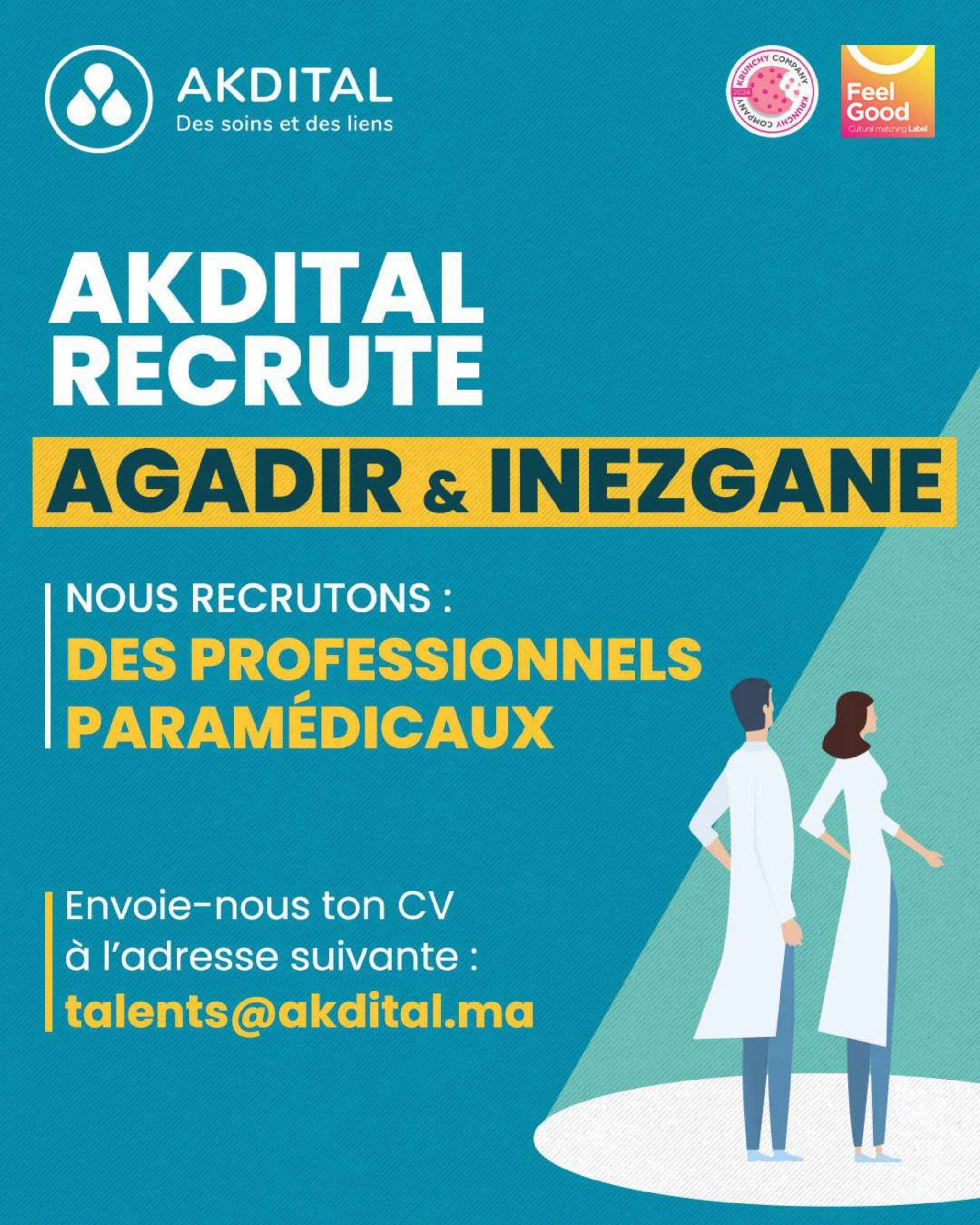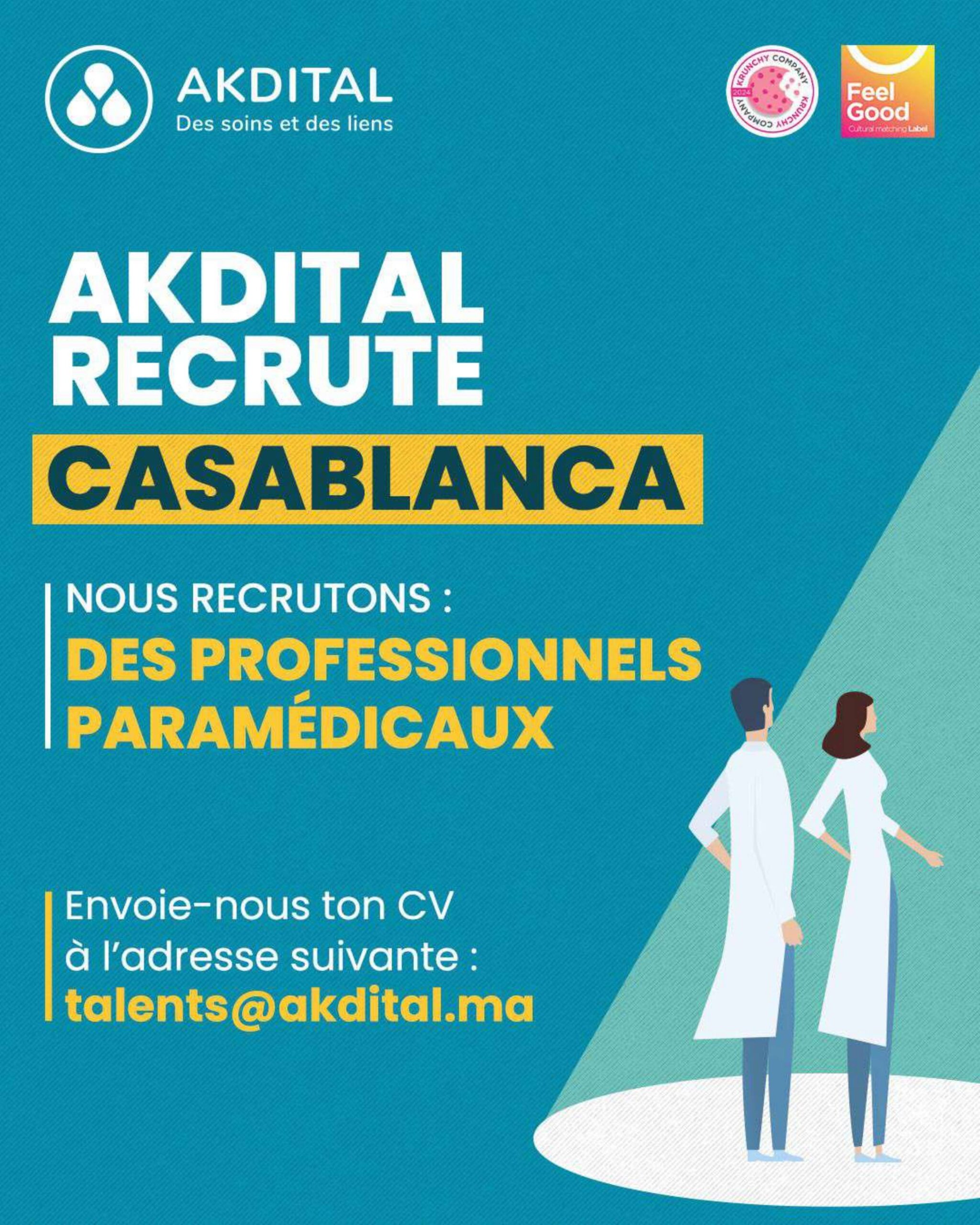 Le Groupe AKDITAL recrute des professionnels paramédicaux à Casablanca, Marrakech, Agadir et Inezgane.