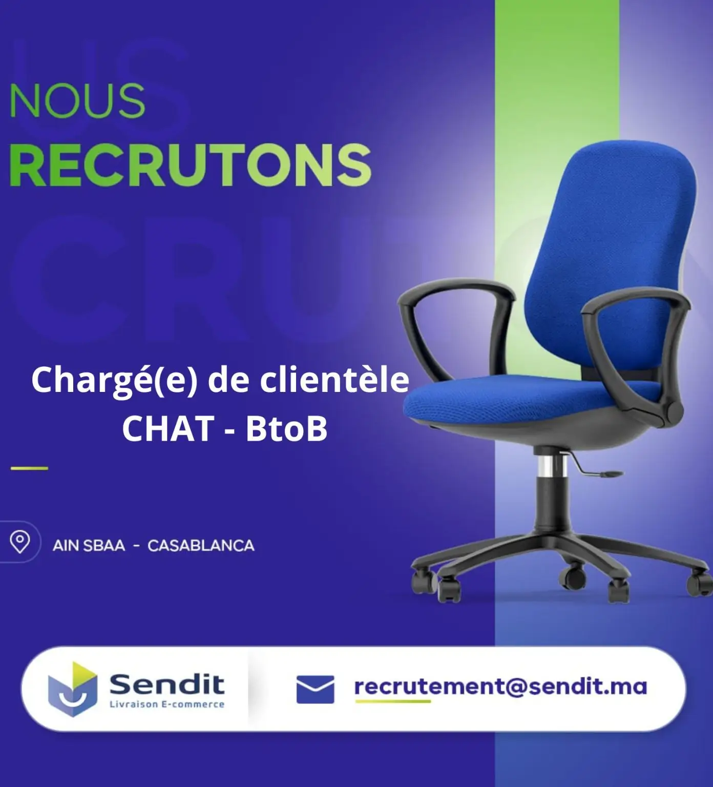 Sendit.ma recrute des Chargé(e)s de Clientèle Service Client en BtoB pour la gestion du CHAT.