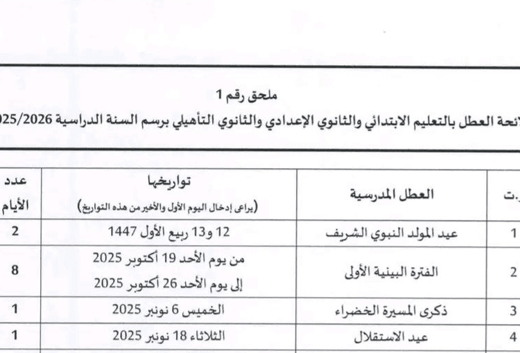 لائحة العطل المدرسية 2025-2026 بالمغرب