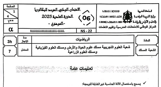 الامتحان الوطني 2025 الرياضيات شعبة العلوم التجريبية مسلك علوم الحياة والارض و مسلك العلوم الفيزيائية ومسلك العلوم الزراعية