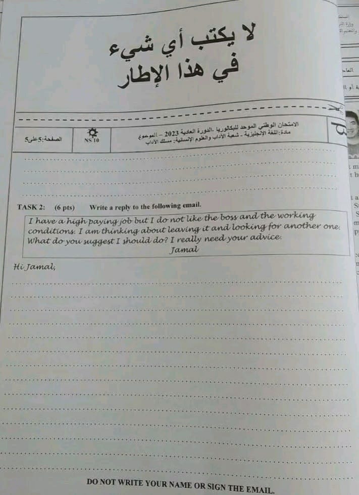 الانجليزية الامتحان الوطني 2023