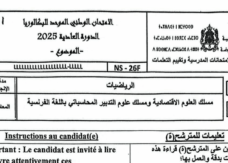 الامتحان الوطني 2025 مادة الرياضيات مسلك العلوم الاقتصادية و مسلك علوم التدبير المحاسباتي