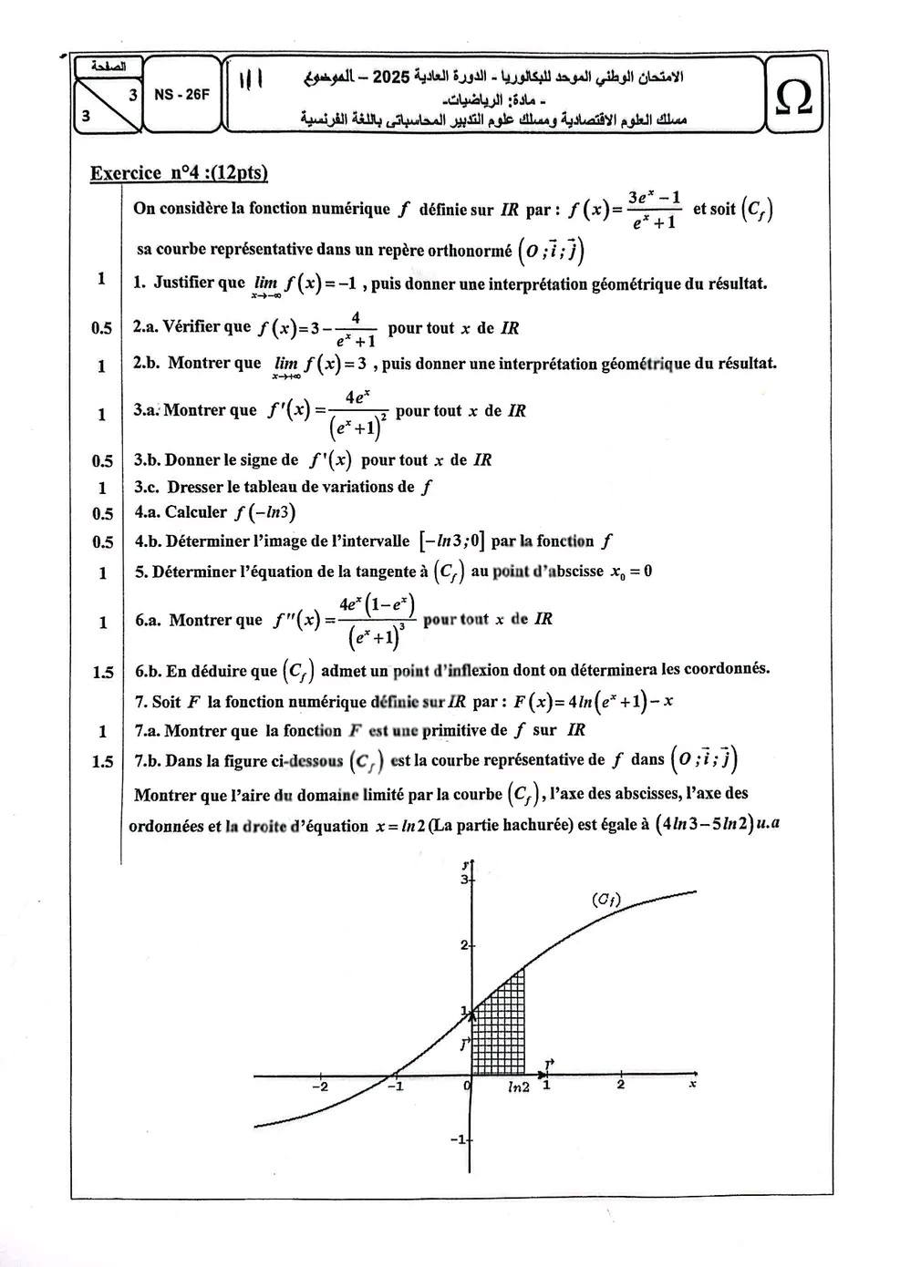 الرياضيات الامتحان الوطني 2025 مسلك العلوم الاقتصادية ومسلك التدبير المحاسباتي