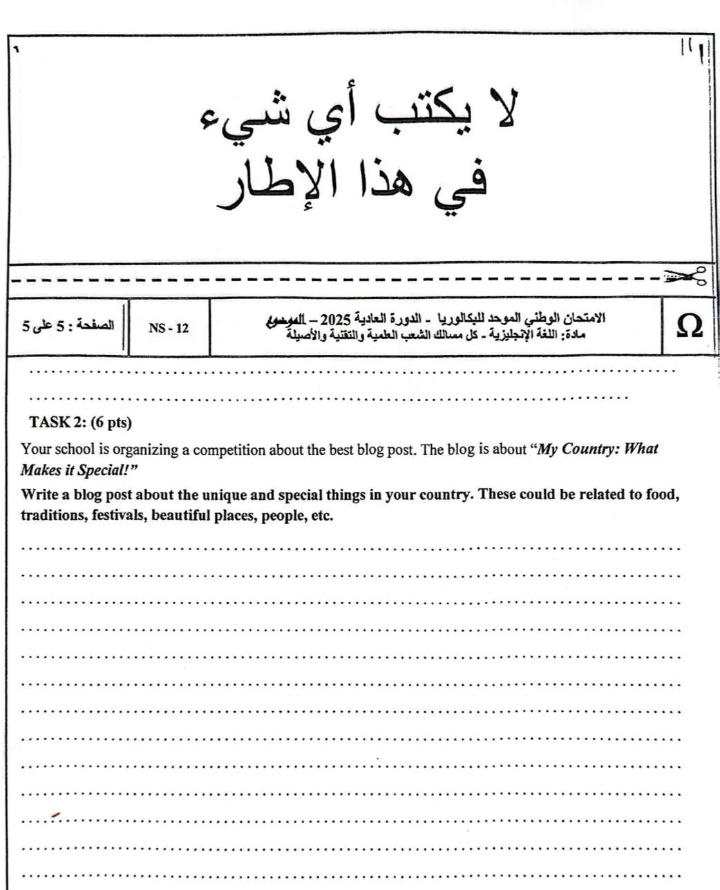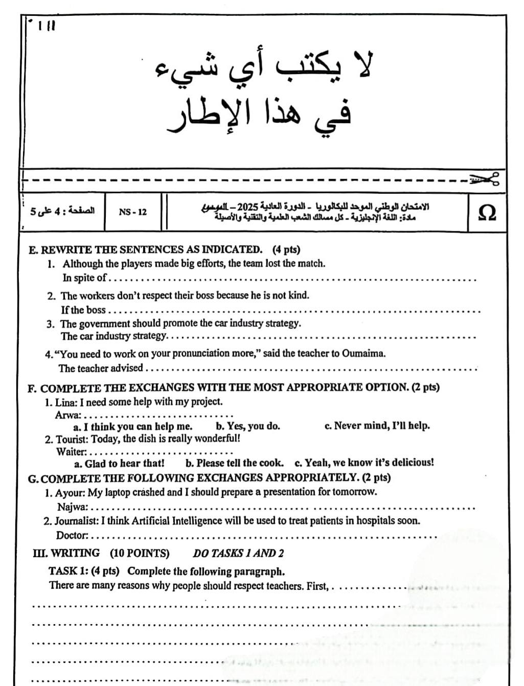 الامتحان الوطني مادة الانجليزية 2025 مسالك الشعب العلمية والتقنية والأصيلة