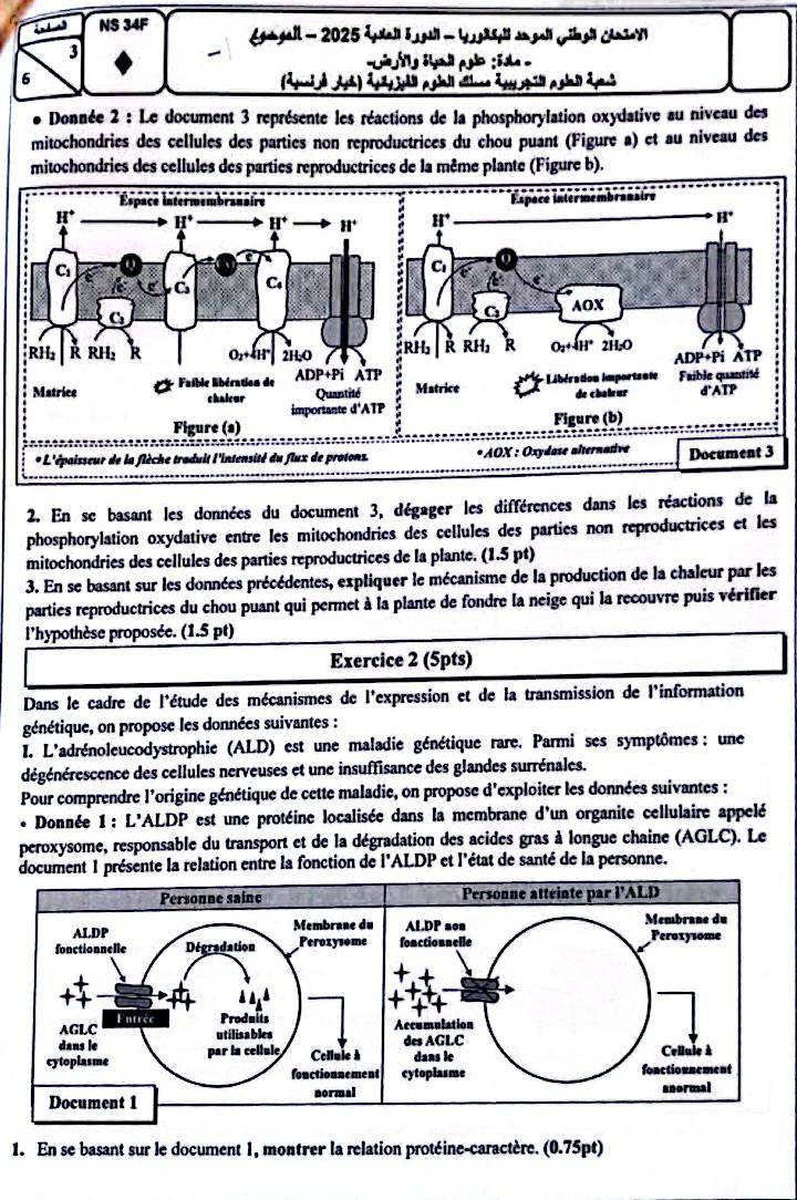 الامتحان الوطني علوم الحياة والارض 2025 شعبة العلوم التجريبية مسلك علوم الحياة والارض