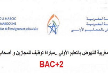 تعلن المؤسسة المغربية للنهوض بالتعليم الأولي عن تنظيم مباراة لتوظيف 20 مقيمين Evaluateurs ويعتبر اخر أجل للترشيح هو يوم 30 ...